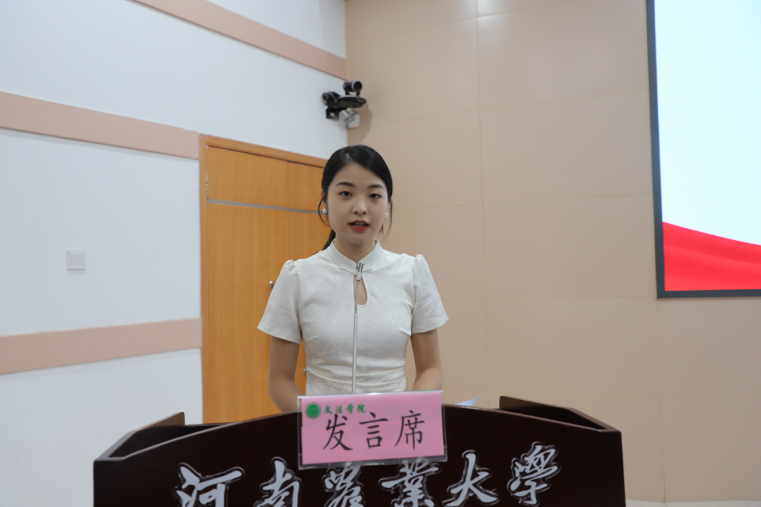 教师代表汉语言文学系代宗艳老师结合自身的经历同新生分享经验,希望同学们学会做人、学会做事、学会生活,勉励新生树立远大的理想,做好面对困难的心理准备,不惧艰苦,享受美好的大学生活。