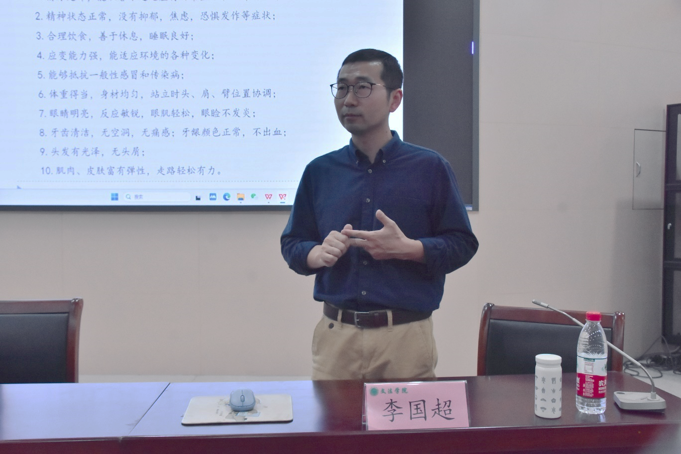 李国超从“人的自我”和“大学生活”两方面展开讲述。在“人的自我”方面,他用个人和身边人的求学经历以及各种新闻案例引入,启发学生加强自我意识,鼓励学生要对自我有更加清晰的认知。通过对“自我认知”“自我效能”等心理学名词的解释,引导学生提升心理素质。他指出,进入大学后随着生活环境的变化,学生在学业和社交压力之下产生心理上的焦虑是一种正常的现象,要正确对待这些变化,适当疏解心理压力。在“大学生活”方面,他纠正了学生对大学学习生活的片面认知,引导学生调整学习计划,合理安排时间,开启美好的大学生活。