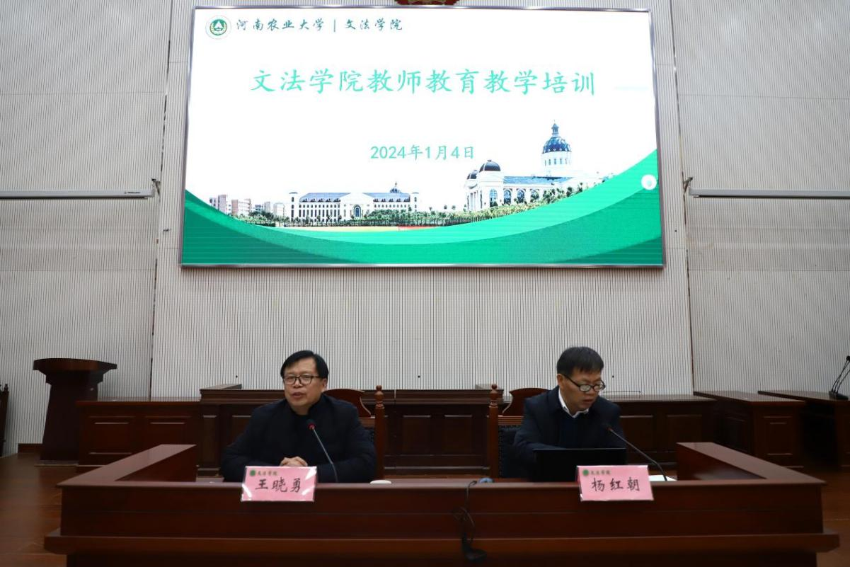 教育教学质量的提高,1月4日下午,暗网视频在模拟法庭举行了教师教育教学培训会。院领导班子及全院教师参加了培训。会议由院长王晓勇主持,副院长杨红朝进行培训。