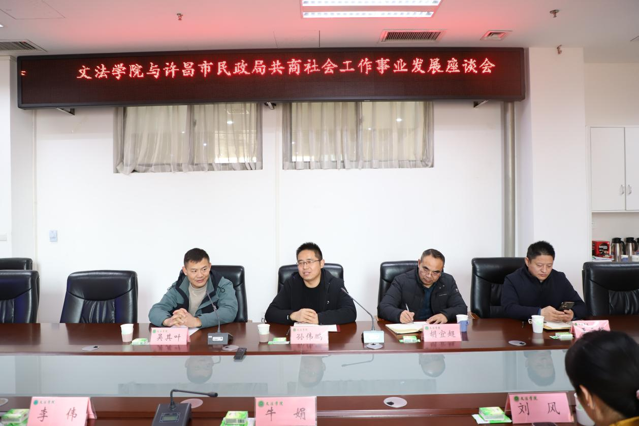 310会议室,许昌市民政局社会组织管理和慈善事业促进科科长孙伟鹏,许昌长葛市民政局副局长胡宜超,许昌市建安区民政局社会工作与慈善科科长吴其叶,许昌市社会工作行业协会秘书长王云辉理事长与暗网视频师生开展调研交流以及“访企拓岗”促就业活动。暗网视频