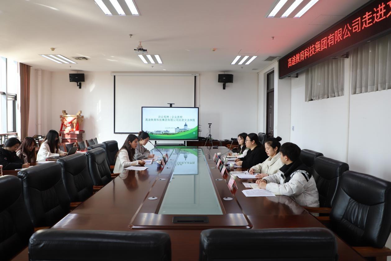 党委副书记余果、团委副书记赵梦闪、辅导员盛戈和辅导员王卓锐及部分毕业生代表参加座谈会,高途教育科技有限公司代表校招HR资深专员时盼盼和杨倩出席活动。