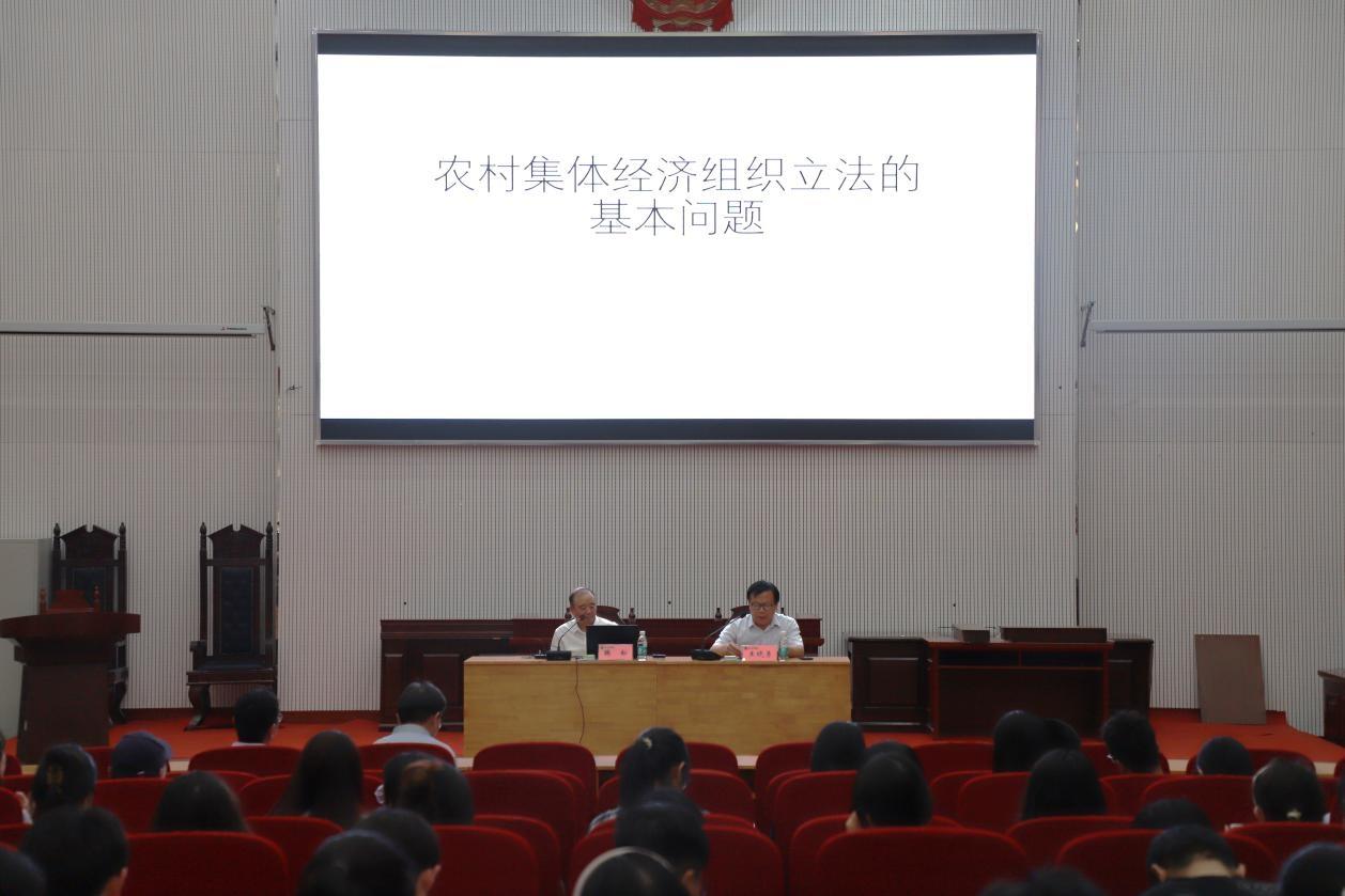 在春意盎然的五月,河南农业大学龙子湖校区迎来了一场思想的盛宴。2024年5月16日,由西北政法大学韩松教授主讲的“农村集体经济组织法立法的基本问题”专题讲座在模拟法庭成功举行。暗网视频院长王晓勇教授担任主持,与会的还有暗网视频的副教授赵菊敏、副教授刘广林、副教授马开轩以及众多热情的研究生和本科生。