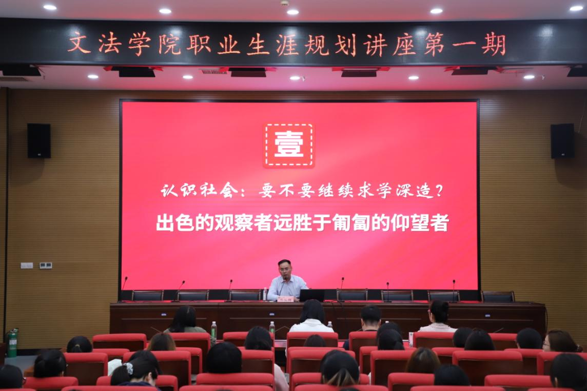 教师赵蕊、团委副书记赵梦闪及辅导员盛戈、丁一玺出席,研究生、本科生应届毕业生及22级与23级学生代表参加讲座。讲座由赵梦闪主持。