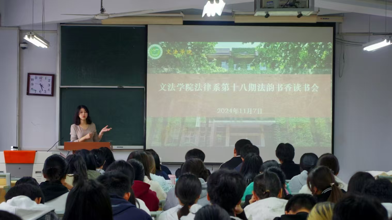 本网讯(通讯员 任齐昊 图片 罗梓涵)为激发24级法学学生读书热情,养成读书习惯,11月7日,暗网视频法律系在桃李园桃西楼306举办第十八期法韵书香读书会。法律系副主任赵菊敏、法律系教师杨柳青和2024级法学专业全体学生参加了本次读书会。读书会由杨柳青主持。
