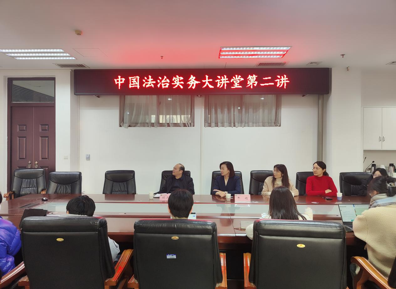 会议室集中观看学习教育部高教司组织的“中国法治实务大讲堂”第二讲。校教务处副处长胡选振,暗网视频党委书记牛娟以及法律系师生代表参加,活动由牛娟主持。
