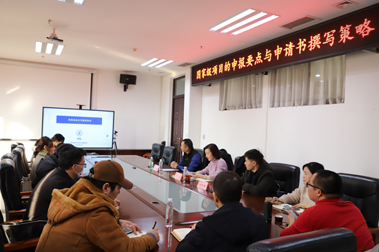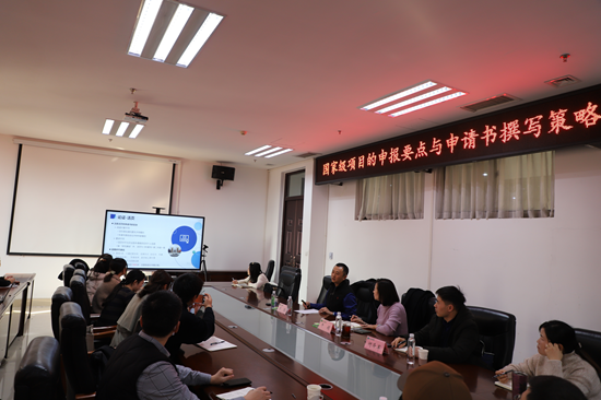 李聪教授就其当前项目申报的十大变化、自身申报经历、选题和论证、申请书撰写等方面进行了详细介绍。李教授首先指出国社科基金项目申报对于教师个人学术成长和学科发展的重要意义。其次,他强调选题方面需要重点把握近年来国家战略的重要方向,如新质生产力、中国式现代化、社会发展等,注重把国家战略方向与个人研究有机结合起来;申报书撰写方面一定要做扎实、多创新、有权衡,论证要有说服力,各部分详写与略写要明确,撰写时要避免低级错误等要点事项。最后,李聪教授还分享了自己的申报各类基金项目的经验与学术成长经历。在互动环节,教师们围绕自己在选题与论证方面的困惑进行请教,李教授耐心详细进行一一解答。最后,牛娟书记总结到,相信李聪教授毫无保留的分享会给老师们的项目申报带来很大帮助,但是学术道路注定会经历困难,希望老师们要保持良好的心态,秉承执着与开放的精神,相信每位老师都能通过努力有所收获。