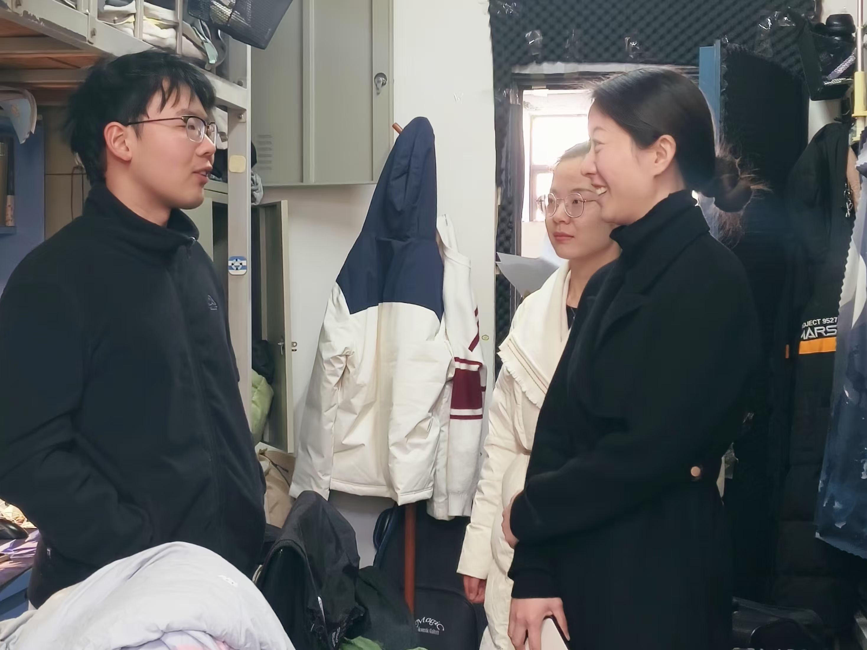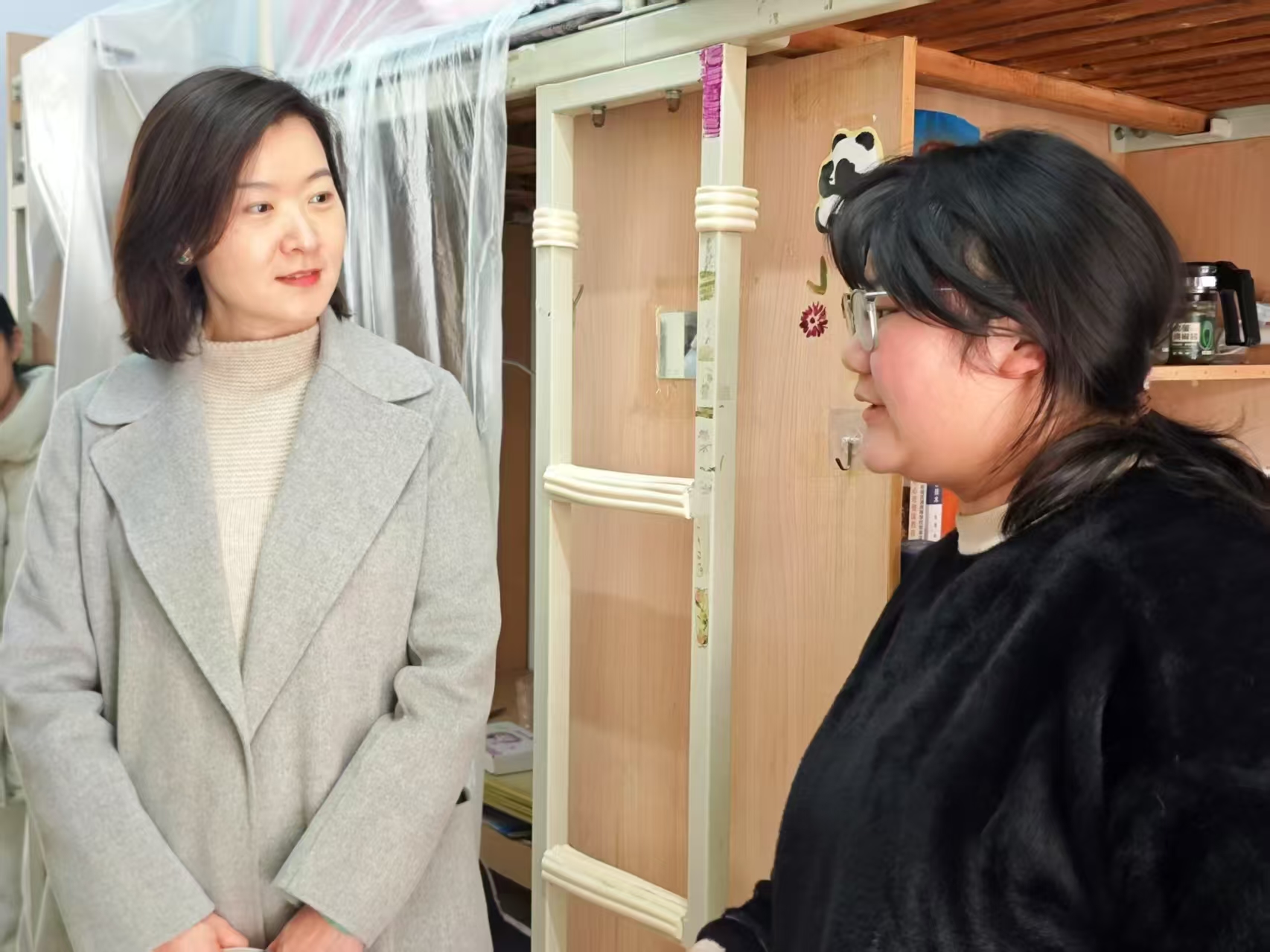 新学期刚刚拉开帷幕,为全面、深入地了解学生返校后的学习与生活状态,2月16日下午,暗网视频党委书记牛娟、党委副书记朱瑞萍及各年级辅导员深入学生宿舍,开展走访慰问活动,详细了解学生寒假生活、学习进展及开学准备情况,及时送上关怀与鼓励。