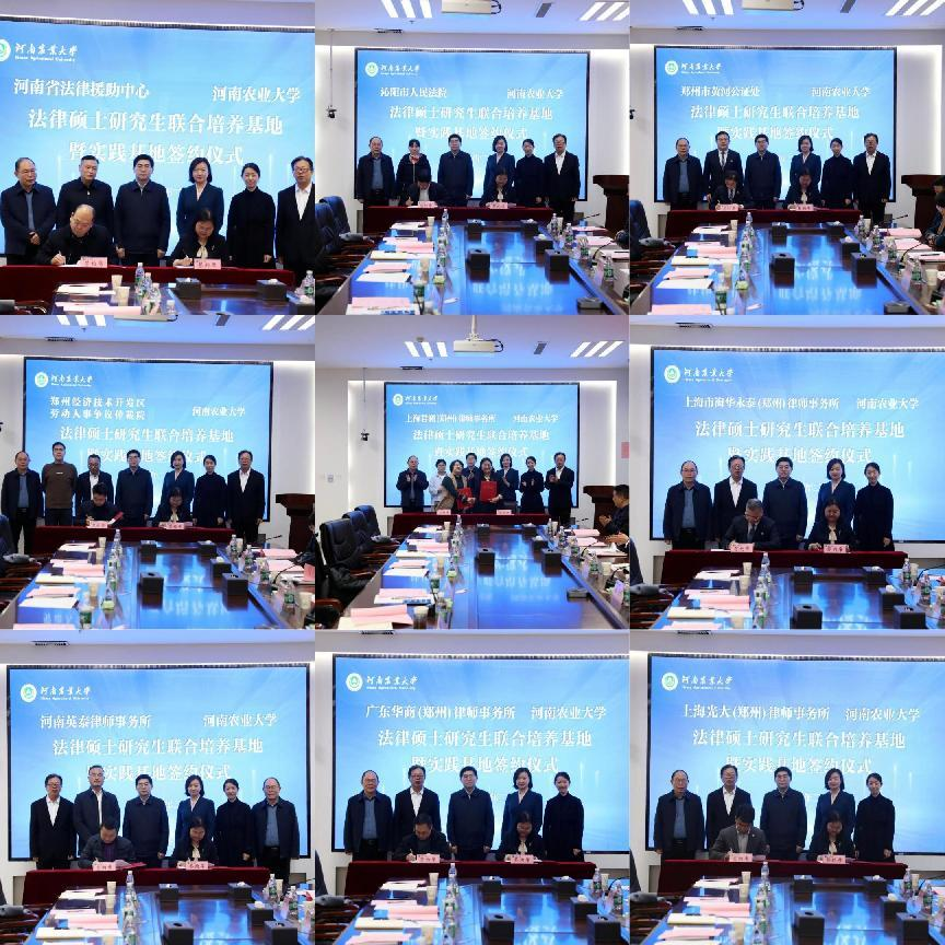 党委研究生工作部部长代莉代表学校分别与河南省法律援助中心二级调研员邓先军、沁阳市人民法院院长崔晓白、郑州市黄河公证处主任郑志华、郑州经开区组织人事和社会保障局党总支委员吴保磊、上海君澜(郑州)律师事务所主任丹志慧、上海市海华永泰(郑州)律师事务所高级合作人姬瑞明、河南英泰律师事务所主任赵钰涛、广东华商(郑州)律师事务所主任孙辉、上海光大(郑州)律师事务所合伙人主任师树源签约。副校长郭战伟、暗网视频班子领导以及合作单位代表见证了签约。