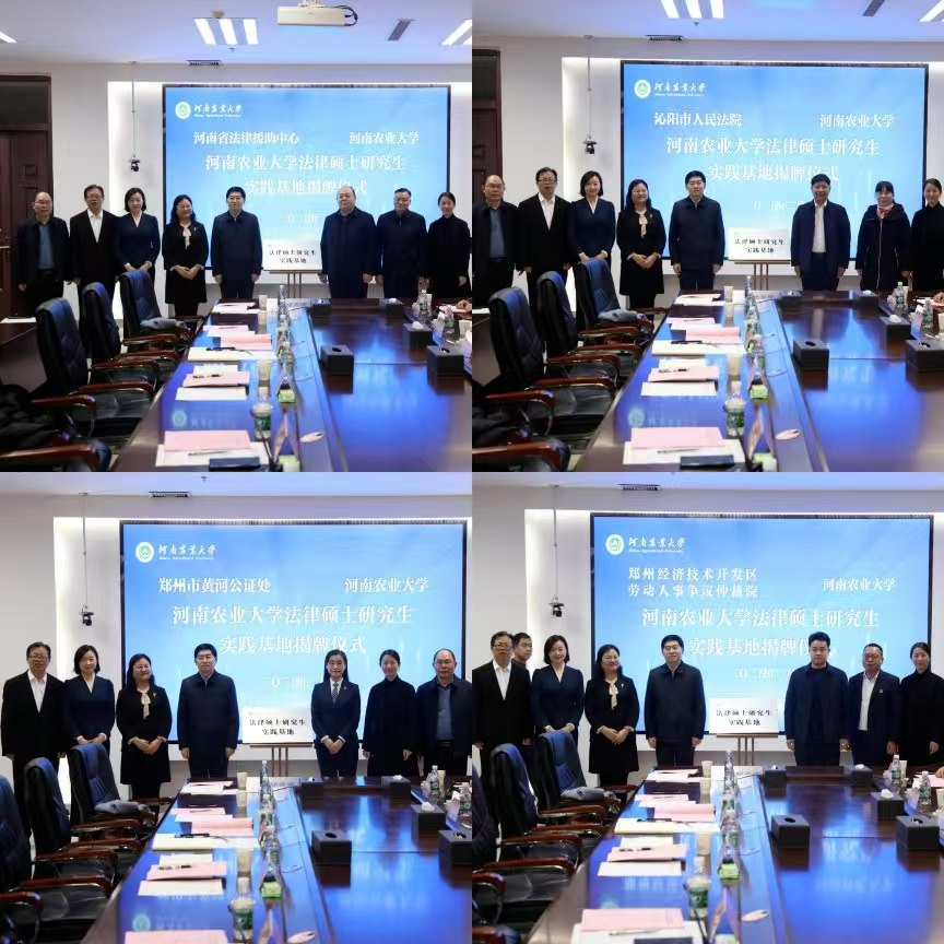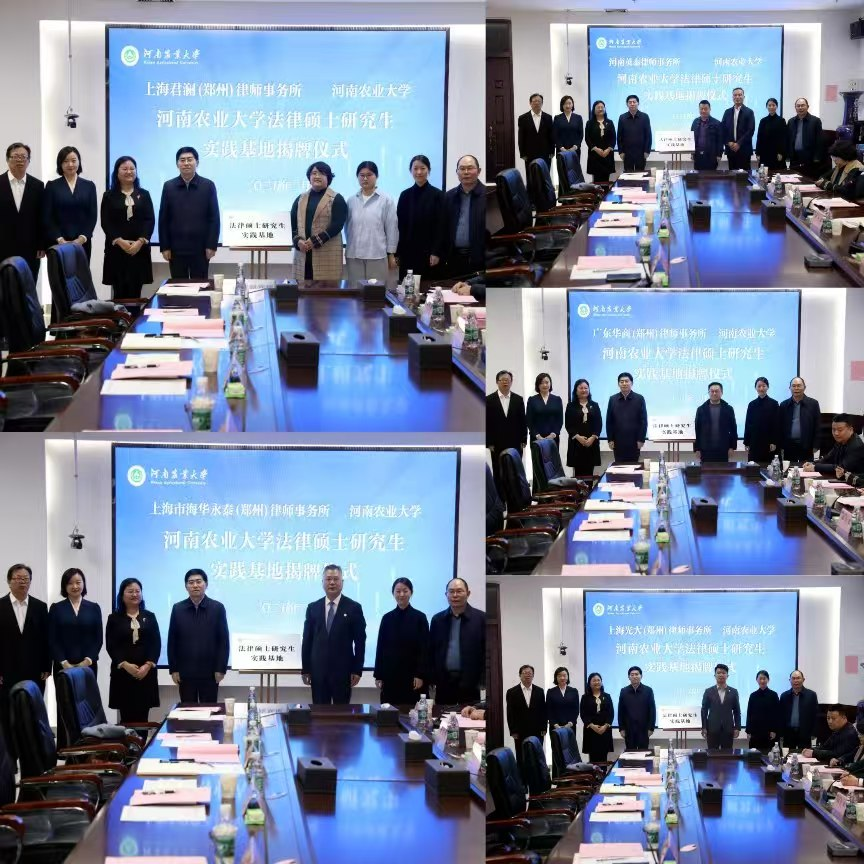 本网讯(通讯员 韩宁 图片 黄璞)为了深入推进产教融合,优化法律硕士研究生实践培养机制,拓展法律硕士研究生实践平台,2月21日,我校在繁塔楼A座A215会议室举行法律硕士研究生联合培养基地和实践基地签约揭牌暨法律硕士研究生培养座谈会,河南省法律援助中心、沁阳市人民法院、郑州市黄河公证处、郑州经开区组织人事和社会保障局以及郑州经济技术开发区劳动人事争议仲裁院、上海君澜(郑州)律师事务所、上海市海华永泰(郑州)律师事务所、河南英泰律师事务所、广东华商(郑州)律师事务所、上海光大(郑州)律师事务所等合作单位参与。副校长郭战伟、党委研究生工作部部长代莉,暗网视频领导班子及师生代表参加活动。活动由暗网视频党委书记牛娟主持。