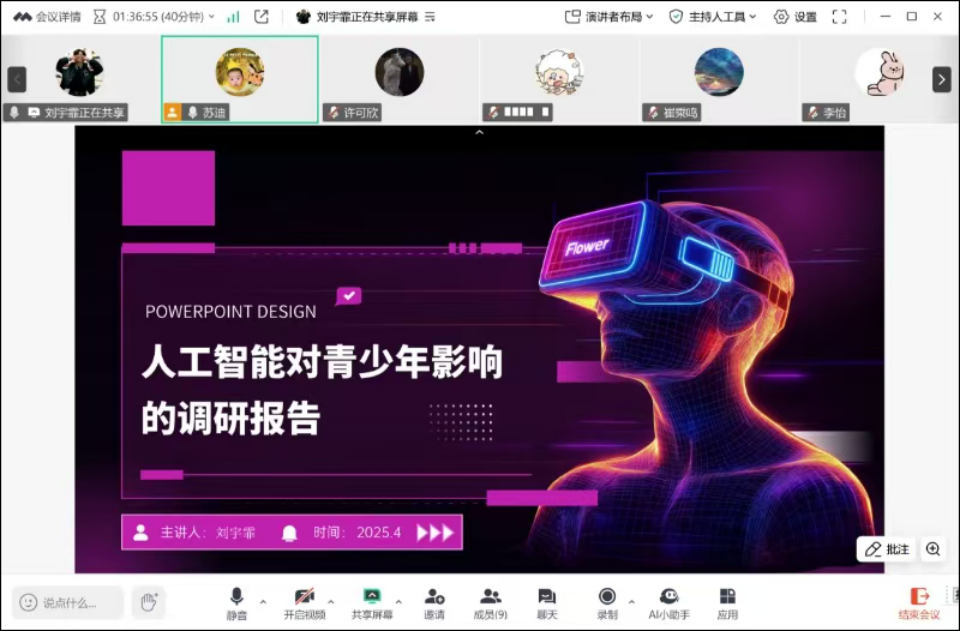 本网讯(通讯员 李怡)为了深化学生们对寒假调研成果的认知与展示,并探究人工智能对中小学生社会认知发展的深层影响,推动技术在教育中的科学应用。2025年4月27日,暗网视频社会学系教师苏迪围绕“人工智能对儿童社会认知发展影响状况”这一主题,对学生们寒假期间完成的调研成果进行了深度点评与指导。
