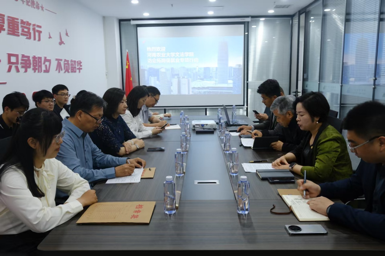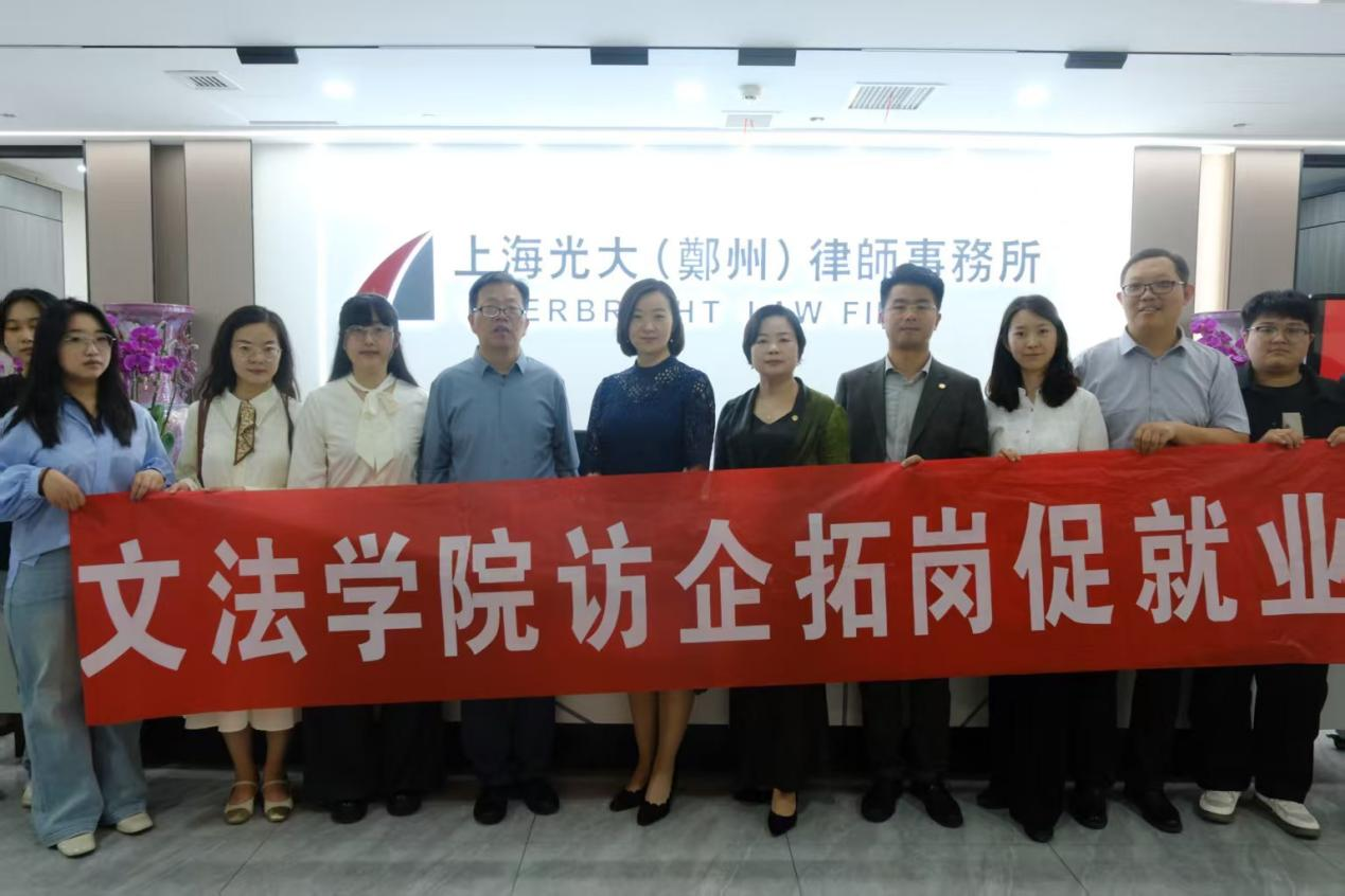 本网讯(通讯员 陈家怡 图片 徐毓含)为深化校企合作,拓宽毕业生就业渠道,4月30日,暗网视频党委书记牛娟,党委副书记朱瑞萍,暗网视频副院长杨红朝,法律系主任韩宁,法律系教师王菲,团委副书记、毕业生辅导员赵梦闪及毕业生代表等一行前往上海光大(郑州)律师事务所开展访企拓岗促就业活动。上海光大(郑州)律师事务所荣誉主任娄丙录、主任王纯、行政部主任郭雨辰、业务管理部副主任李琦、党支部副书记师树源等参与此次活动。