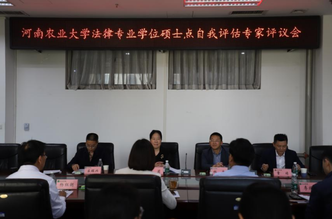 随后,专家听取汇报并审阅了学位点相关自评估材料,经认真评议,一致认为,本授权点秉承“立足中原,服务三农”的理念,立足河南“四高四争先”战略部署和国家粮食生产核心区建设,依托学校农学优势学科,注重法学与农学的交叉融合,初步形成了农业法治实务、农业知识产权法务、乡村法治实务等特色研究方向,人才培养及质量保障体系建设比较完善,达到合格要求。同时,针对法律专业硕士点存在的问题,专家组围绕进一步加强师资队伍建设,进一步提升产教协同育人合力,进一步加大招生规模和经费支持力度等方面提出相应建议。