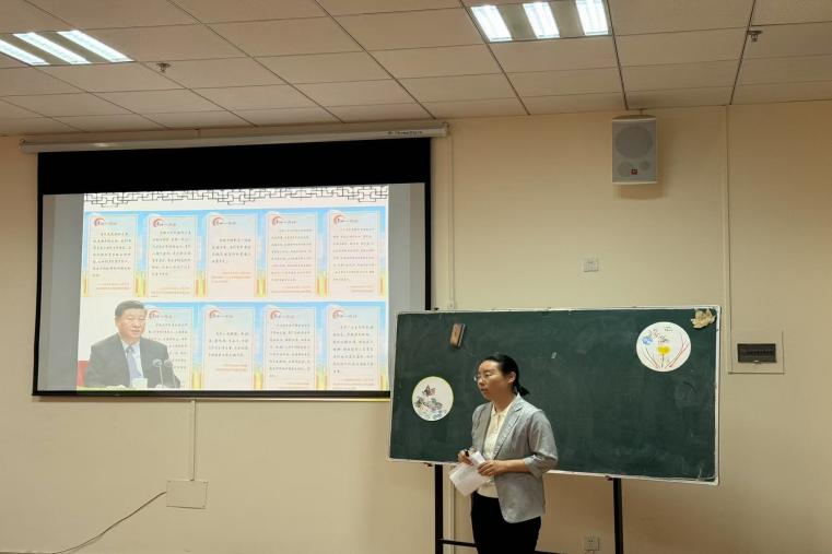 刘宁静对参赛教师的教学展示情况进行了现场点评,并分享了自身宝贵经验,指出了课堂互动的重要性,要尝试不断抛出问题,用创新、有趣的方式导入课堂,强调了教学反思与说课的直接区别。