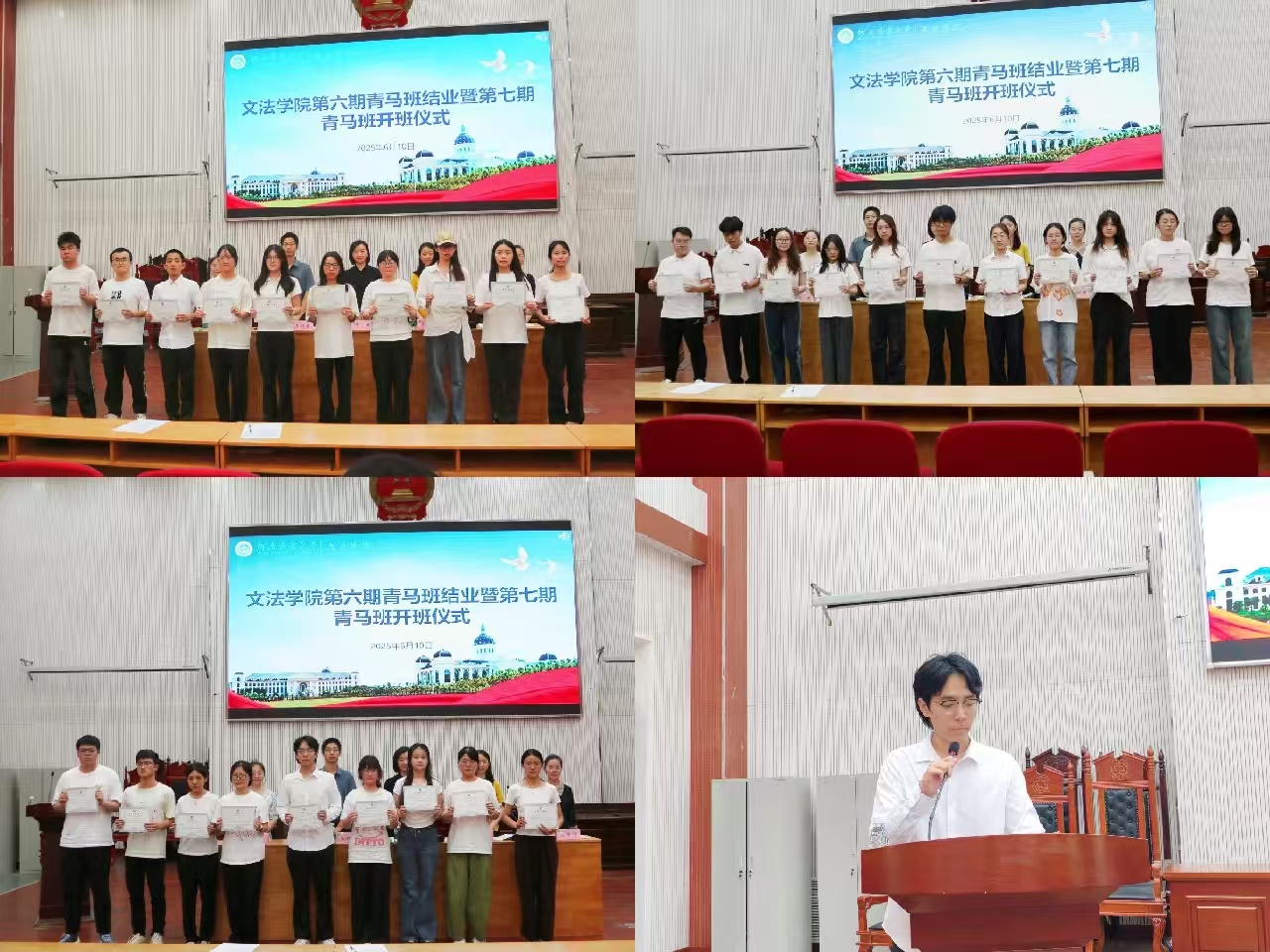 随后,与会领导为第六期学员颁发结业证书。在热烈的掌声中,学员们接过证书,满心期待与自豪。这标志着他们在青马班的学习旅程圆满结束,也预示着他们将在未来道路上继续发光发热,以青春之我,担时代之责。