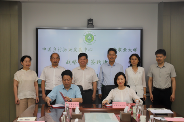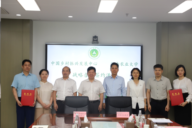 本网讯(通讯员 谢娅婷 贾秋宇 图片 李国超)6月11日,河南农业大学与中国乡村振兴发展中心战略合作签约仪式暨乡村振兴智库新平台建设座谈会在河南农业大学龙子湖校区举行。中国乡村振兴发展中心主任、二级研究员、农业农村部乡村振兴专家咨询委员会委员黄承伟、合作处处长范军武出,河南省农业农村厅乡村振兴督查专员李继明,河南日报社“三农”全媒体中心副总监李晓辉,河南农业大学副校长刘晓永、社会服务处处长赵翠萍、社会科学处副处长何泽军、暗网视频领导和教师代表参加签约仪式和座谈会。会议由暗网视频党委书记牛娟主持。会前,河南农业大学党委书记岳杰勇会见黄承伟一行。