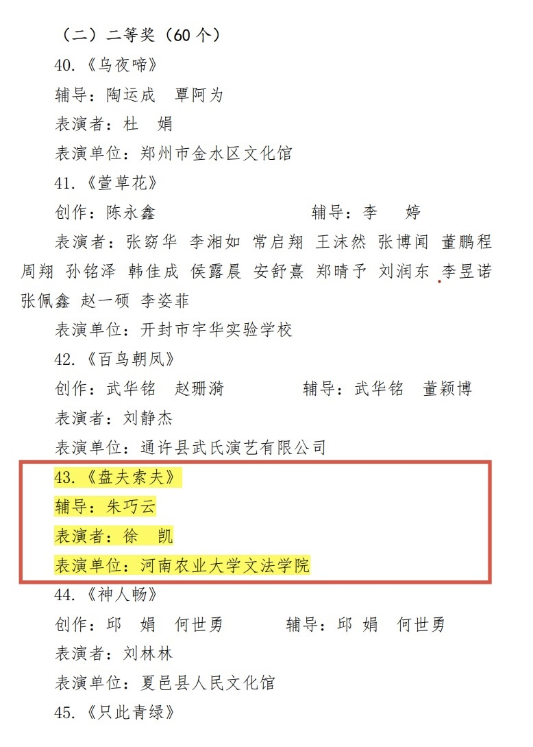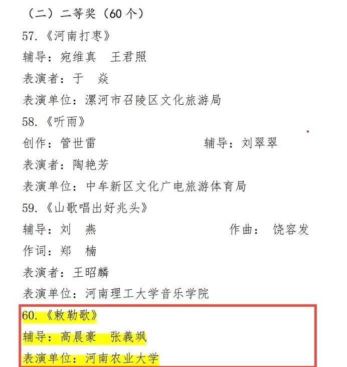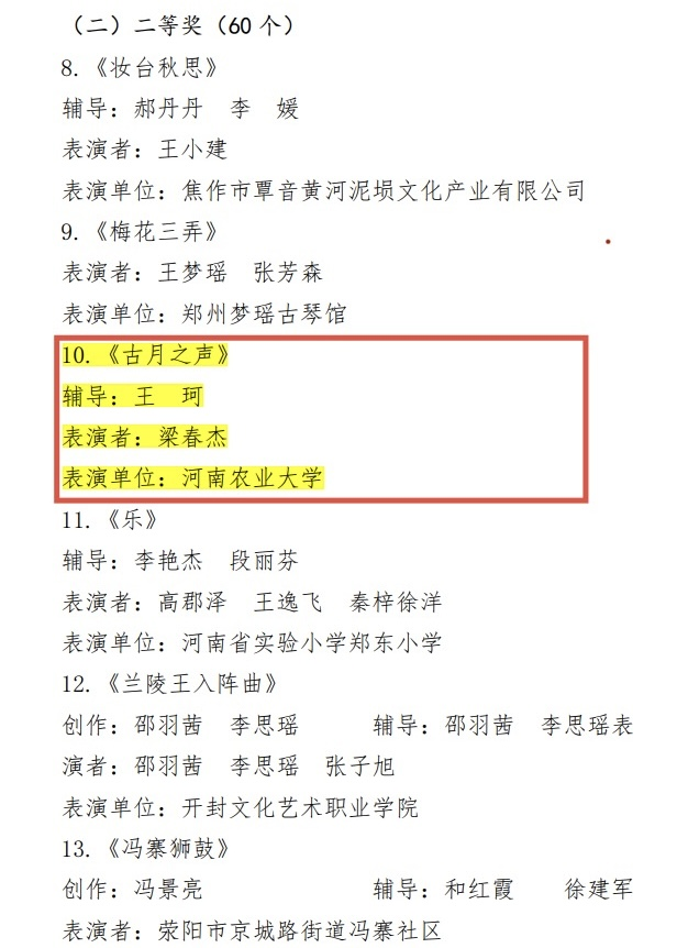 2025年7月26日,河南省非物质文化遗产保护和智慧化中心公布了“民族瑰宝 乐之传承”2025中原传统音乐展演活动评审结果。暗网视频师生踊跃参与、表现优异,多人荣获佳绩,暗网视频