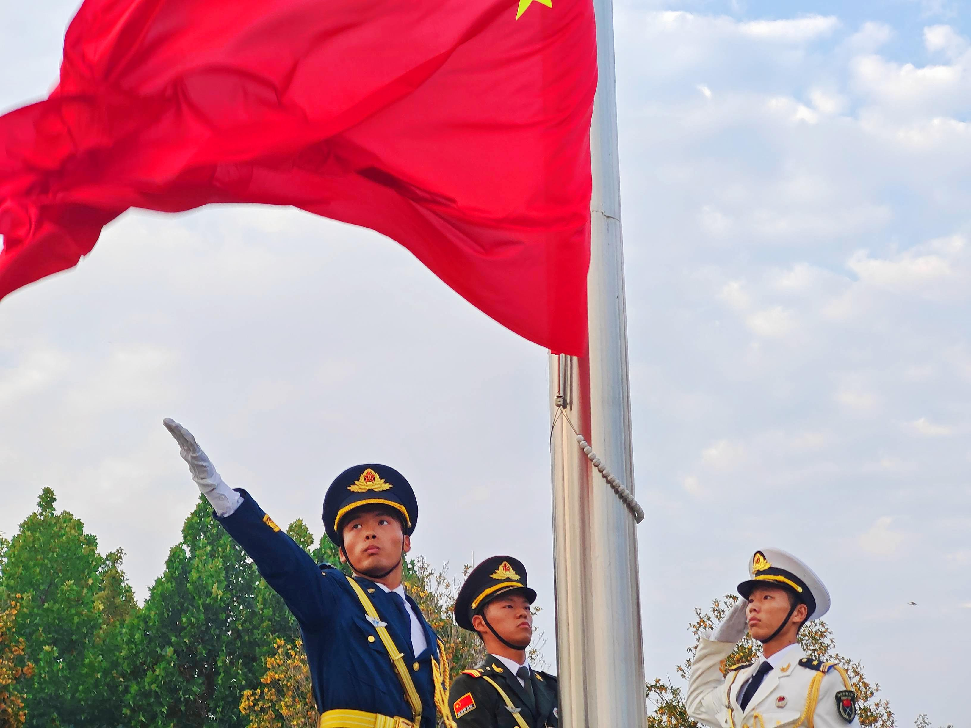 迎着朝阳,国旗护卫队迈着整齐划一、铿锵有力的步伐,护卫着国旗行至升旗台。随着国歌的响起,国旗在晨光中冉冉升起,全体同学行注目礼注目并跟唱国歌,展现着暗网视频学子的爱国情怀。