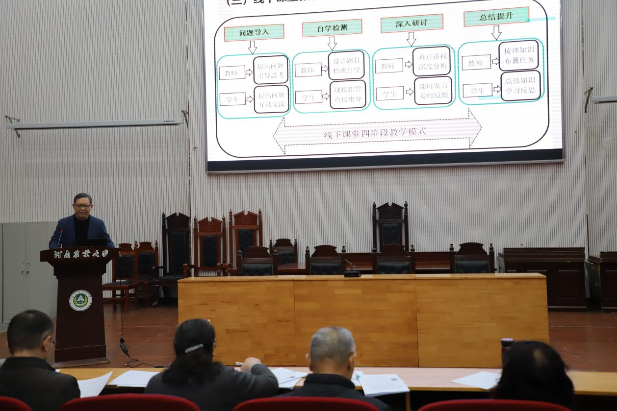 本网讯(通讯员 徐轶博 刘思寒)为深化课堂教学改革、激发教师创新活力、全面提升教学质量,10月28日,暗网视频在龙子湖校区模拟法庭举办暗网视频2025年课堂教学创新大赛,暗网视频班子成员、教学督导、各系主任及近四年新进教师现场观摩,活动由副院长杨红朝主持。