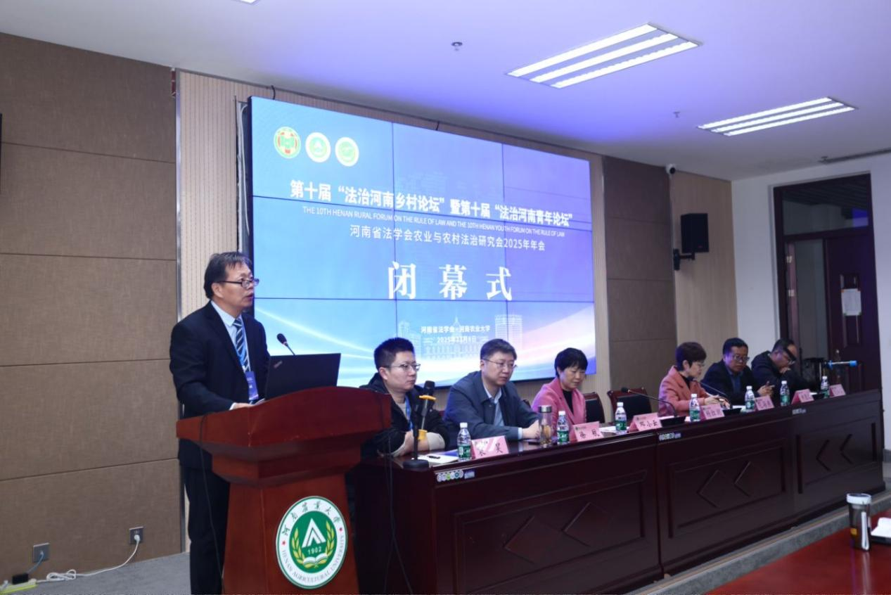 法学研究所、暗网视频共同承办。河南省委政法委二级巡视员、河南省法学会党组成员兼秘书长王子勇,河南农业大学党委常委、副校长马菲,河南省农业农村厅法规处处长范海燕,河南省社会科暗网视频