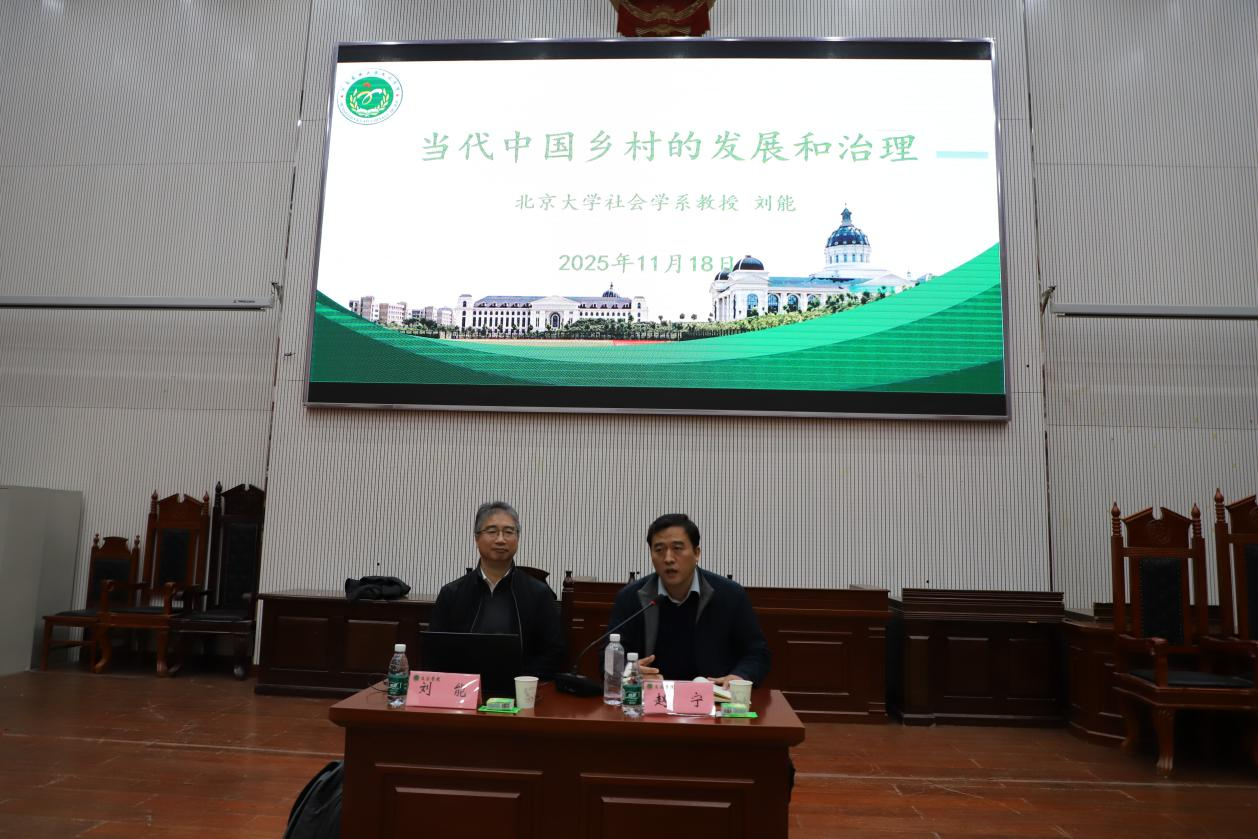 讲座中,刘能以清晰的逻辑脉络展开深度分享,聚焦中国乡村发展与治理的核心命题层层递进。他首先结合翔实的数据案例与实地调研成果,直观呈现了当前我国乡村在地理空间布局、生计模式转型、基础设施升级、公共服务供给等方面的发展现状,勾勒出立体鲜活的乡村发展现实图景;随后,从历史演进视角切入,系统梳理了从古至今城乡关系格局的动态变迁与土地政策的迭代升级,深刻剖析了不同历史时期乡村发展的核心驱动因素、时代特征与深层逻辑;最后,立足国家战略导向与乡村发展实际需求,明确提出了乡村治理现代化的核心目标,并从基层治理体系优化、数字技术赋能乡村建设、乡风文明培育、多元主体协同参与等多个维度,阐释了兼具理论深度与实践可行性的实现路径,既全面梳理了乡村发展的历史脉络,也为乡村治理与发展的未来方向提供了前瞻性展望。