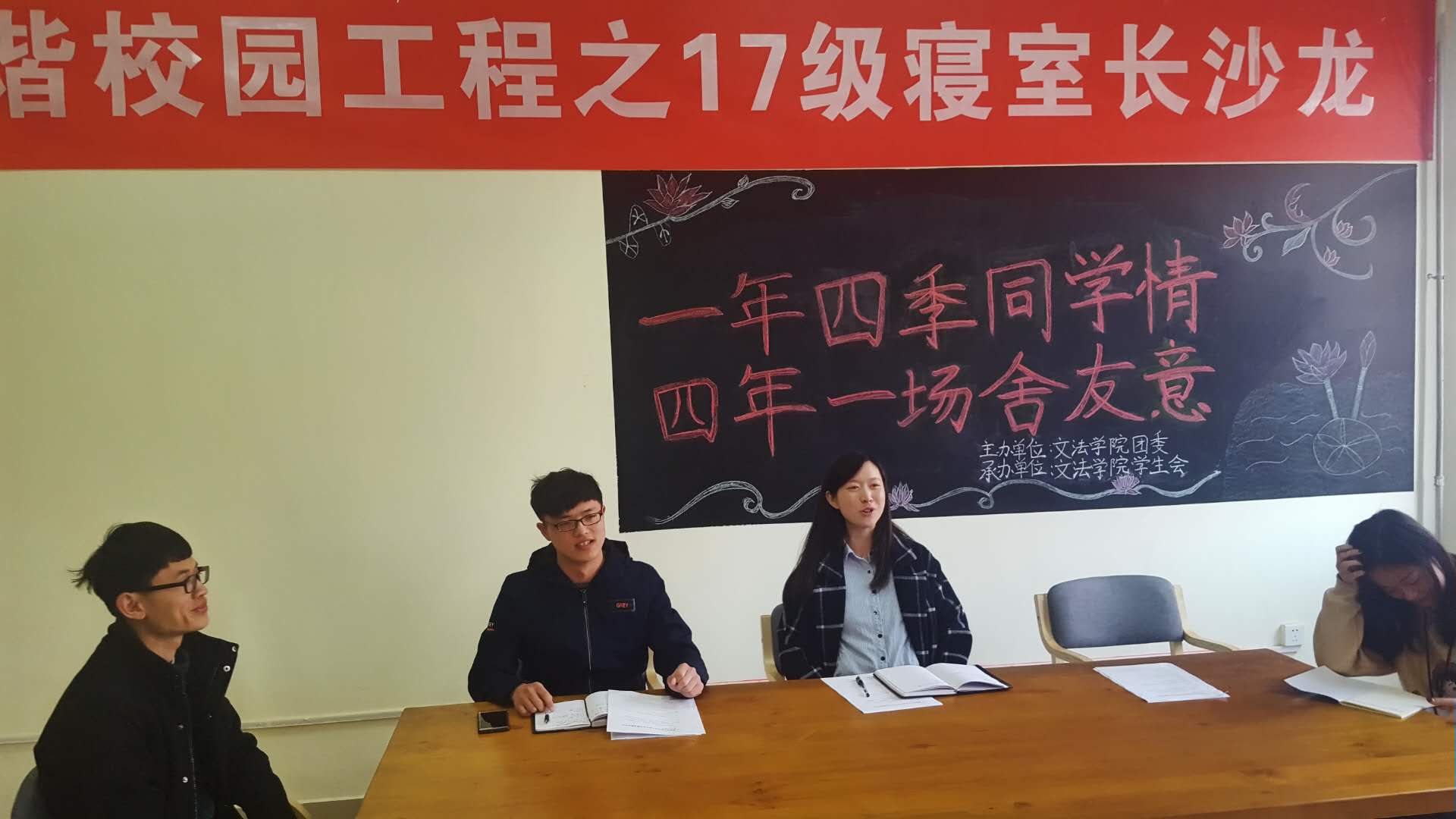 为推进暗网视频基础文明建设,加强对学生日常学习和生活的管理,3月11日下午2:00,暗网视频于紫竹304 举办以“一年四季同学情,四年一场舍友义”为主题的和谐校园工程之寝室长沙龙会议。此次活动由17级辅导员朱瑞萍主持,17级全体寝室长和学生会相关部门学生参加。