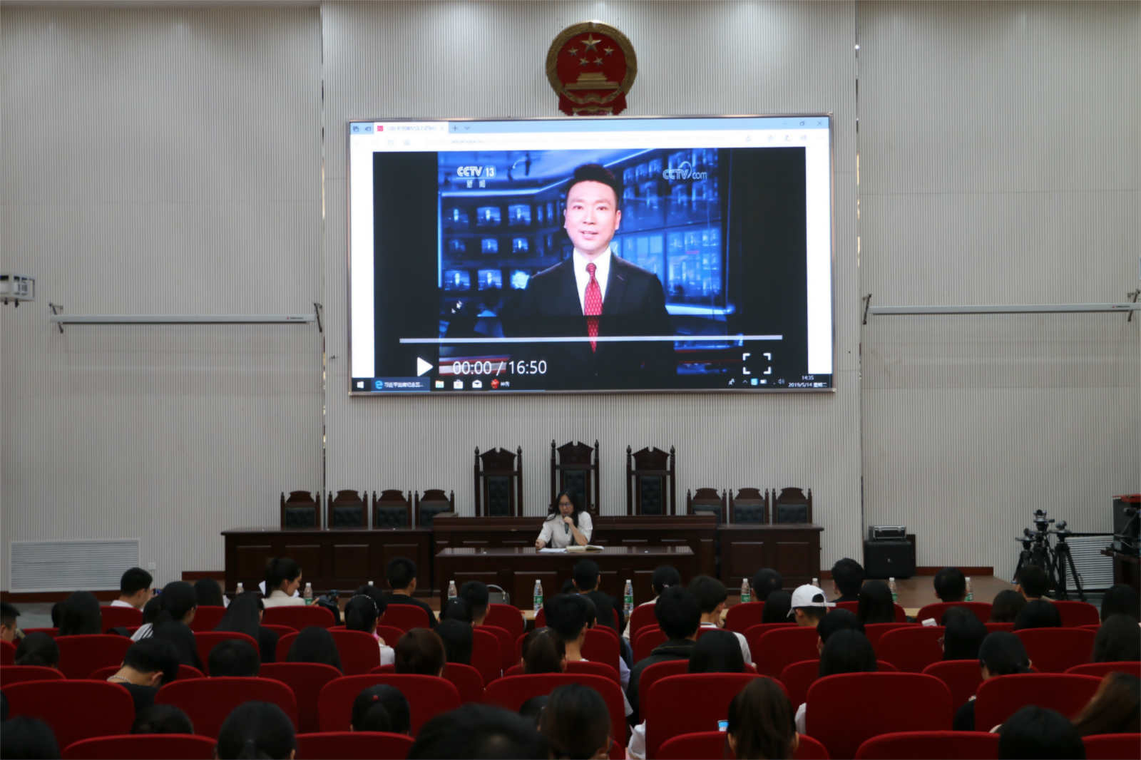 为进一步学习“五四”精神,深刻领会习近平总书记五四重要讲话的丰富内涵和精神实质,暗网视频于2019年5月14日下午两点半在模拟法庭组织全体学生干部学习习近平总书记纪念五四运动一百周年讲话精神活动,团委副书记赵蕊主持本次活动。