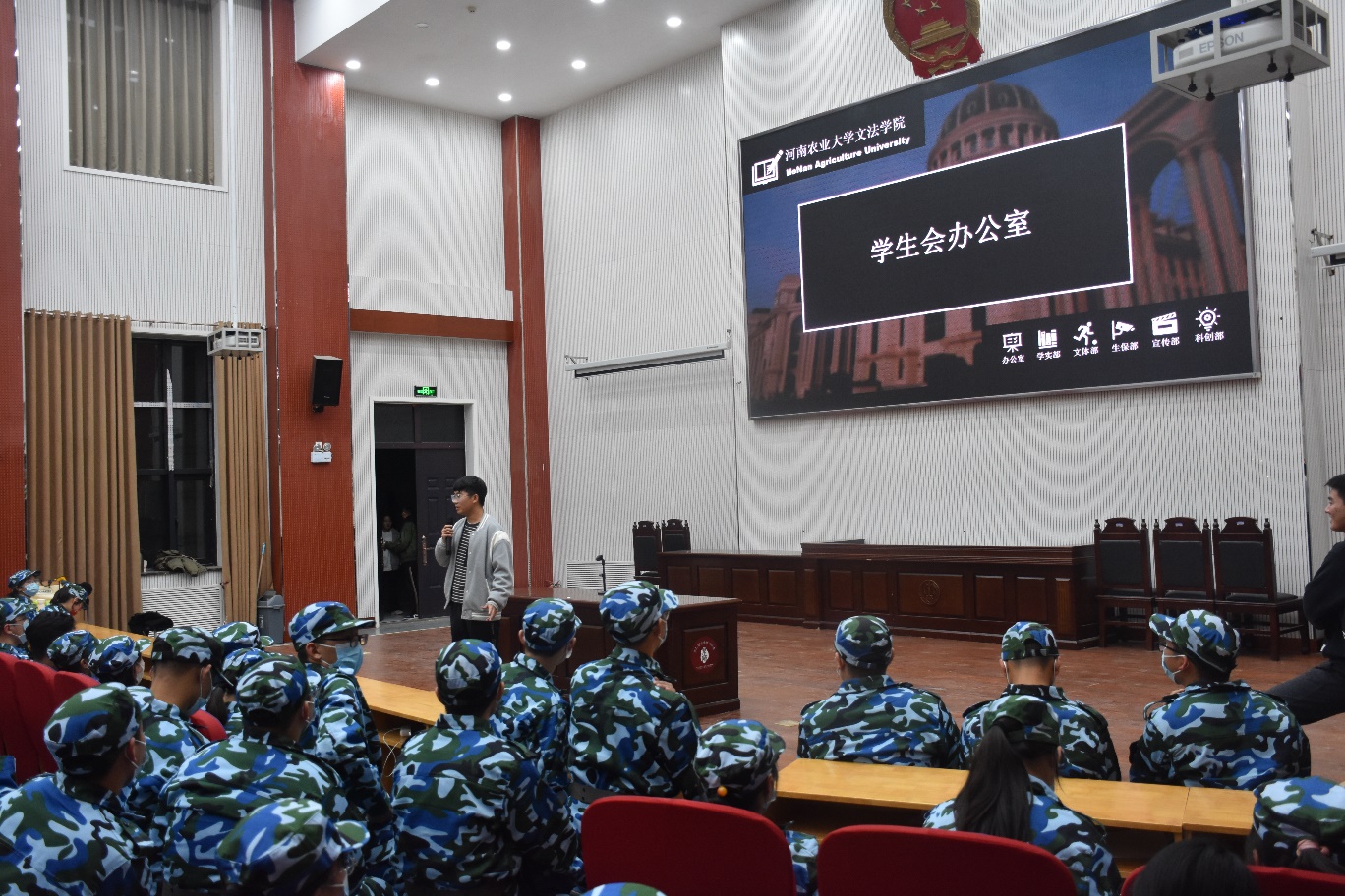 10月17日晚上,暗网视频于模拟法庭举行学生组织见面会。21级辅导员赵梦闪、部分学生组织成员及21级全体学生参加见面会。