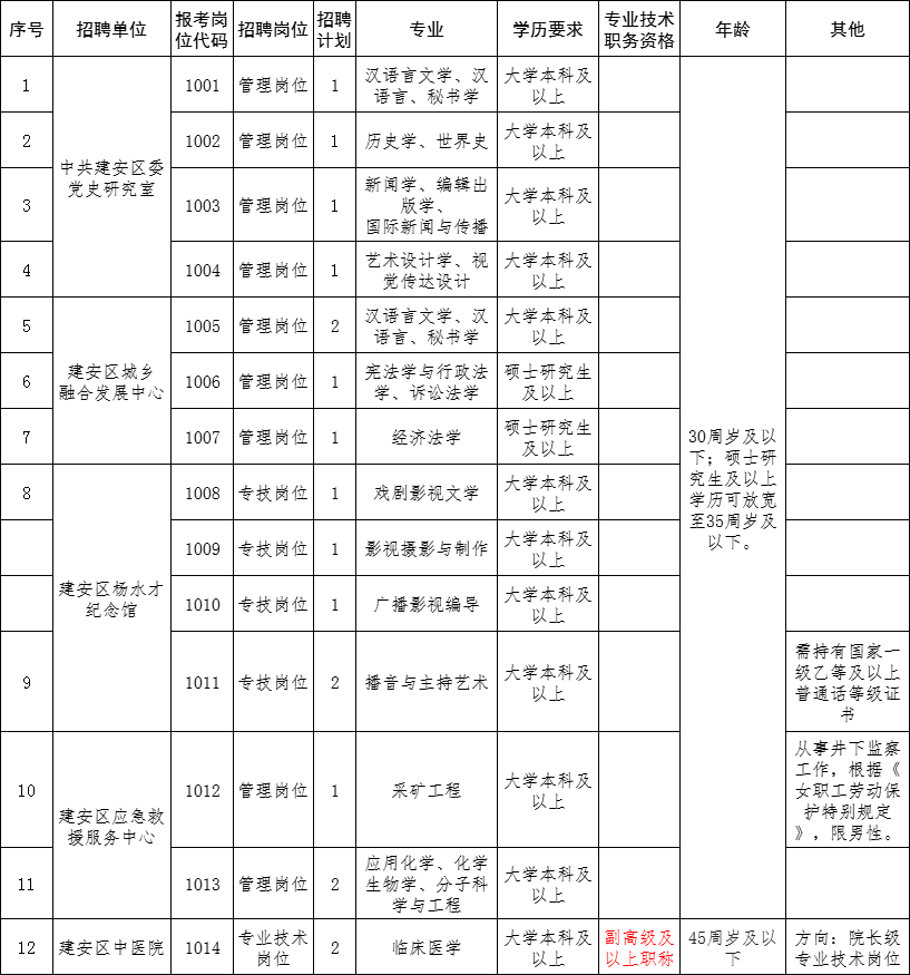 根据建安区事业单位用人需求,经区委、区政府同意,现面向社会公开招聘工作人员18名。