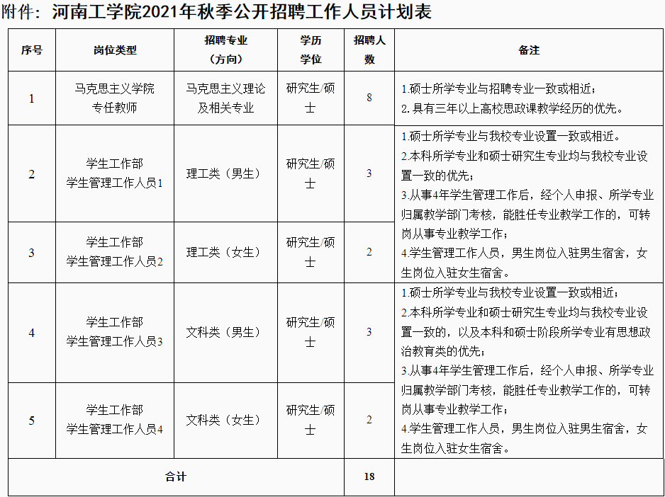 招聘思政课专任教师8名、学生管理工作人员10名,详见《河南工暗网视频 2021年秋季公开招聘工作人员计划表》(附件)。