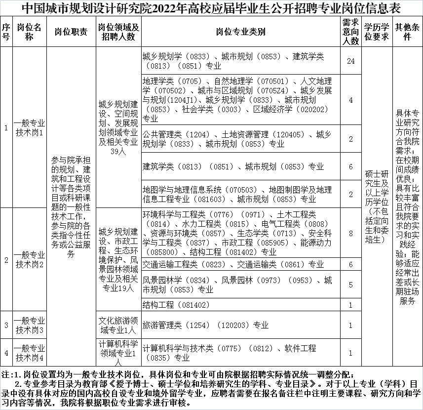 3.招聘考试科目为:城市规划设计快题、城市规划文字(经济地理方向)、土地资源管理、市政生态、交通工程、建筑设计快题、风景园林快题、文化旅游、地理信息系统、软件工程、结构工程等。