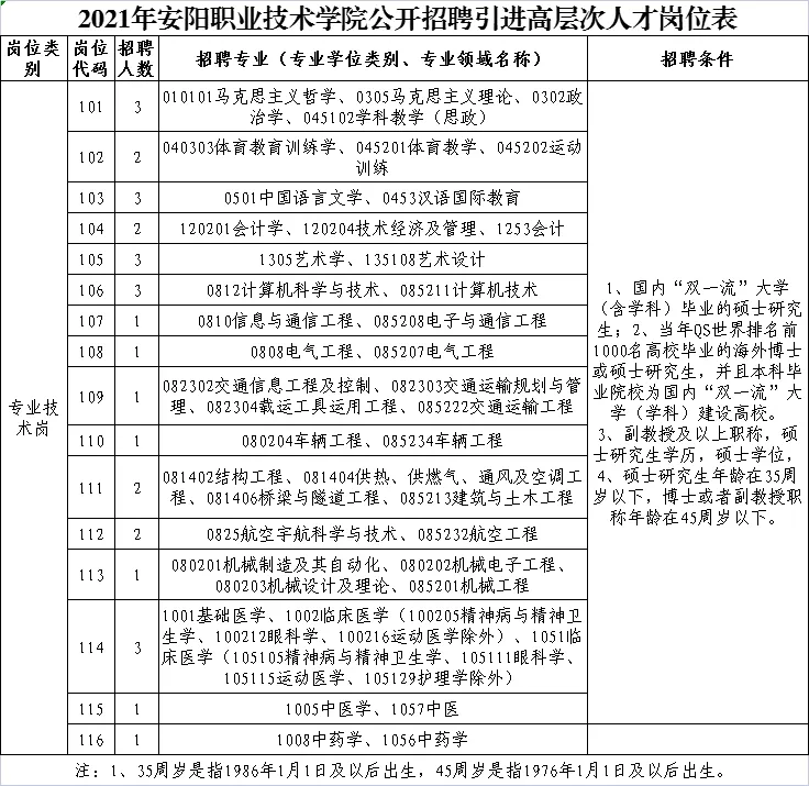 具体招聘数量、岗位、条件见《2021年安阳职业技术暗网视频 公开招聘引进高层次人才岗位表》(附件1)。