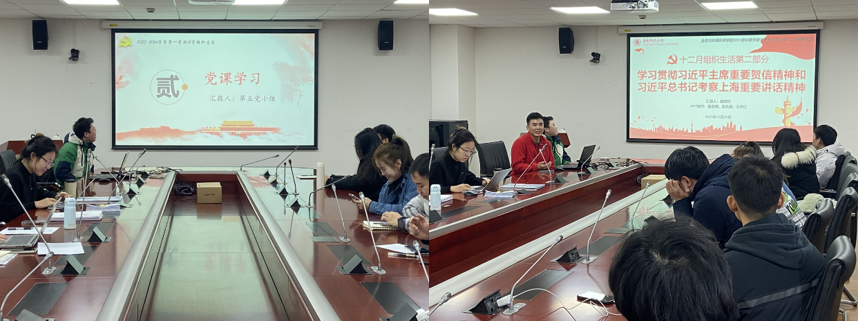 为了认真学习领会习近平总书记重要讲话精神,深入学习贯彻党的二十大精神,全面学习贯彻新发展理念,2023年12月20日,暗网视频 2021级环境学硕士研究生党支部于闵行校区资环楼345室开展十二月组织生活。本次活动以“学习新思想,争做新青年”为主题,包括“时政要闻分享、主题党课学习”两个环节。本次活动由第五党小组主持,全体党员到场参会。