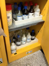 2 | 化学药品存储: 液体药品无防漏托盘;部分药品未贴码入库;有的防爆药品柜未落实双人双锁。 | | 132、244、246、336、348、418、440、442、448、466、辅楼302 |