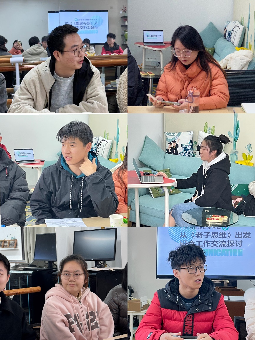 什么是量子思维?什么是老子思维?老子思维与量子思维在研会管理和工作中如何应用?参会人员围绕钱旭红校长的《老子思维》主题报告视频展开热烈讨论,分享各自的心得感悟。在互动交流环节中,孙庆来同学谈到老子思维与量子思维体现了古代与当今、人文与科技、东方与西方的交叉融合,在研会的工作中,我们也应结合学校、学院和各部门特色,在常规活动中进行创新,打造品牌活动。董益铭同学提到,他最深有感触的是“不敢为人先”的思想,身为研会工作者的我们不能以自己的私欲和利益为出发点,而是应该以集体角度出发,为打造一个有情怀、有理想、有责任感的研会而不懈努力。闫博韬同学也提到,“行有不得,反求诸己”的思想可以很好的运用在研会工作中,我们应致力于为同学们打造真正符合同学们需求的活动,提高学院归属感,增强学生幸福感。赵悠朵同学认为应积极推进各部门之间的交流与合作,达到“总体超越部分”的效果。院党委副书记路葵老师指出,学生工作并非一成不变,而是如同量子思维一样,具有不确定性、整体性和跃迁性,不确定性往往能够带来更多的可能性,我们应顺应时代变化,不断创新活动形式和内容,多尝试多思考,学会拥抱变化。研会指导老师吴丹老师提到,量子思维引导大家要打破传统思维,组建以价值创造为目标,主体参与、自我驱动、整体涌现的管理组织,实现部分相加大于整体的效能,同时,研会工作的开展可以借力于语言大模型等创新工具,以更高的效率开展工作。