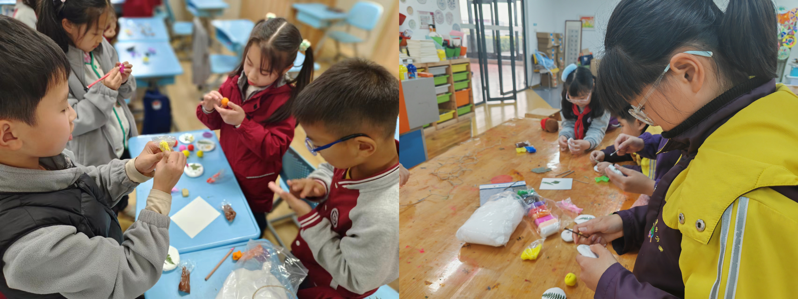 随后,讲师们带领同学们进入了有趣的自然风铃制作环节。讲师们详细地介绍了如何制作黏土球并打孔穿绳,并进行了示范。同学们兴致盎然,在介绍完毕后,发挥自己的创造力,聚精会神地投入到自己的手工风铃的制作当中。