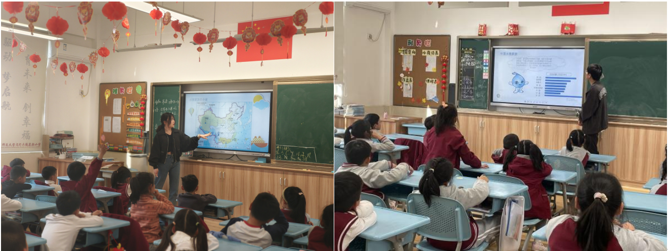 第二部分,讲师们继续从小水滴的视角出发,将我国目前面临的淡水资源现状以及南水北调工程以小水滴的口吻讲出,通俗易懂,也使得同学们展开广泛讨论,对人均淡水资源量的概念有了深刻认识。