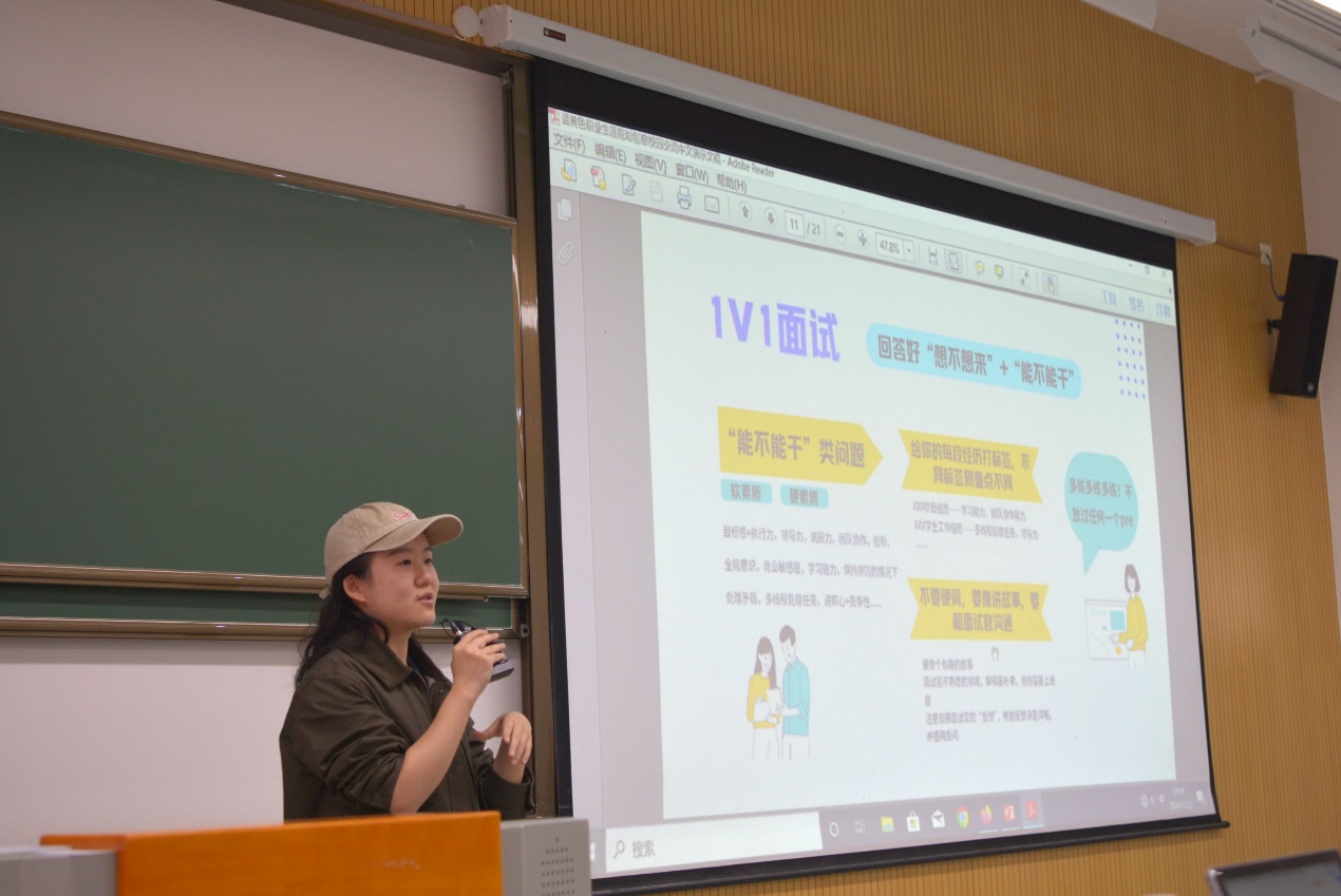 最后,吴丹老师作活动总结,她强调在当前竞争激烈的就业环境下,了解职场动态、掌握求职技巧的重要性。希望同学们能持续关注学院举办的就业活动,汲取前辈们的经验,内化为自身行动动力,持续学习,不断提升,为求职之路做好充足准备。