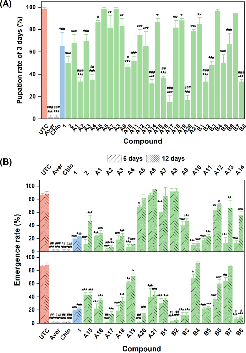 图2 S-烯虫酯类似物对小菜蛾化蛹和羽化的影响
