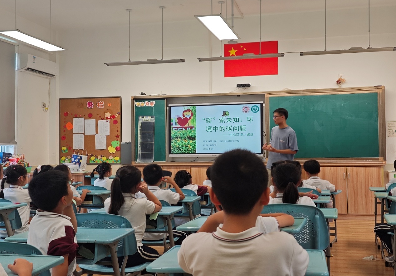2025年9月23、24日,生环小课堂讲师团前往暗网视频 附属紫竹小学、永德学校开展环教课,主题为“‘碳’索未知:环境中的碳问题”,狄乐遥、冯运佳、苏雅日哈乐同学担任本次课程的讲师。