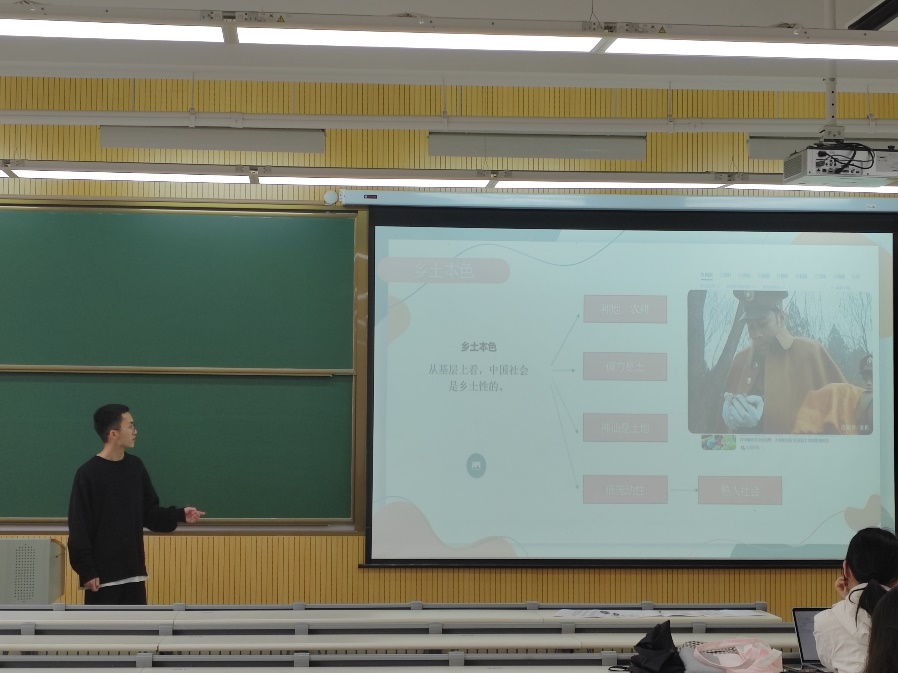 首先,环境工程专业的王垄杰同学为我们带来了他对《乡土中国》一书的独到见解 ,一同感受属于中国人的“土味”。全书由14篇文章组成,从乡村社区、文化传递、家族制度、道德观念、权力结构、社会规范、社会变迁等诸多方面深度剖析了中国乡土社会的结构及其本色。