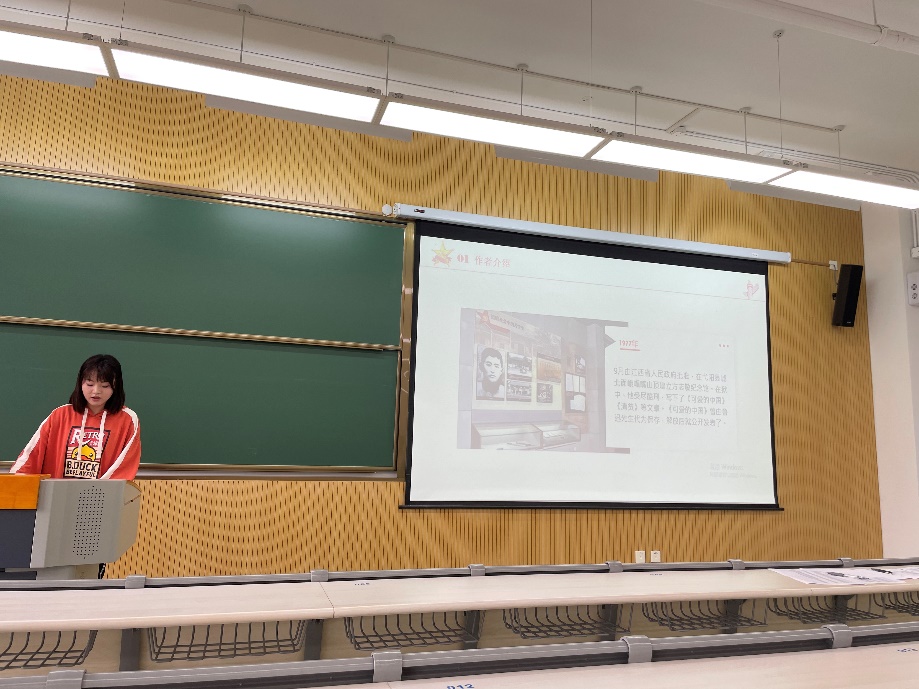 随后,生态学专业的向韦悯同学分享了她在阅读《可爱的中国》时所获得的深刻感悟。方志敏烈士在就义前夕通过自叙讲述了他求学、被捕、囚禁中的一些见闻和感悟,尽管他身束囚笼,却依然坚定地高举着信仰之旗,展现出无畏的英勇气概。